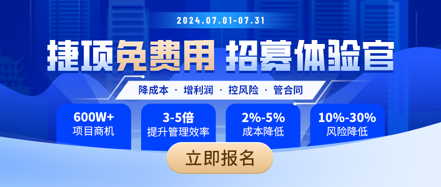 为了进一步推动建筑行业的数字化转型,我们推出“捷项免费用”活动,2024年7月1日-7月31日,报名参与即可享受专属福利。