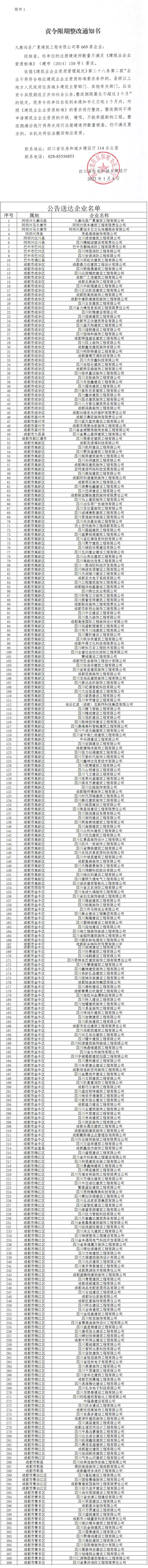 经核查,你单位的注册建造师数量不满足《建筑业企业资质标准》(建市〔2014〕159号)要求,我厅依法作出《责令整改通知书》,责令限期改正,并于2021年11月27日在四川省住房城乡建设厅官方网站公布《四川省住房和城乡建设厅关于责令九寨沟县广夏建筑工程有限公司等1914家企业限期整改的通告》(川建通告〔2021〕163号)。