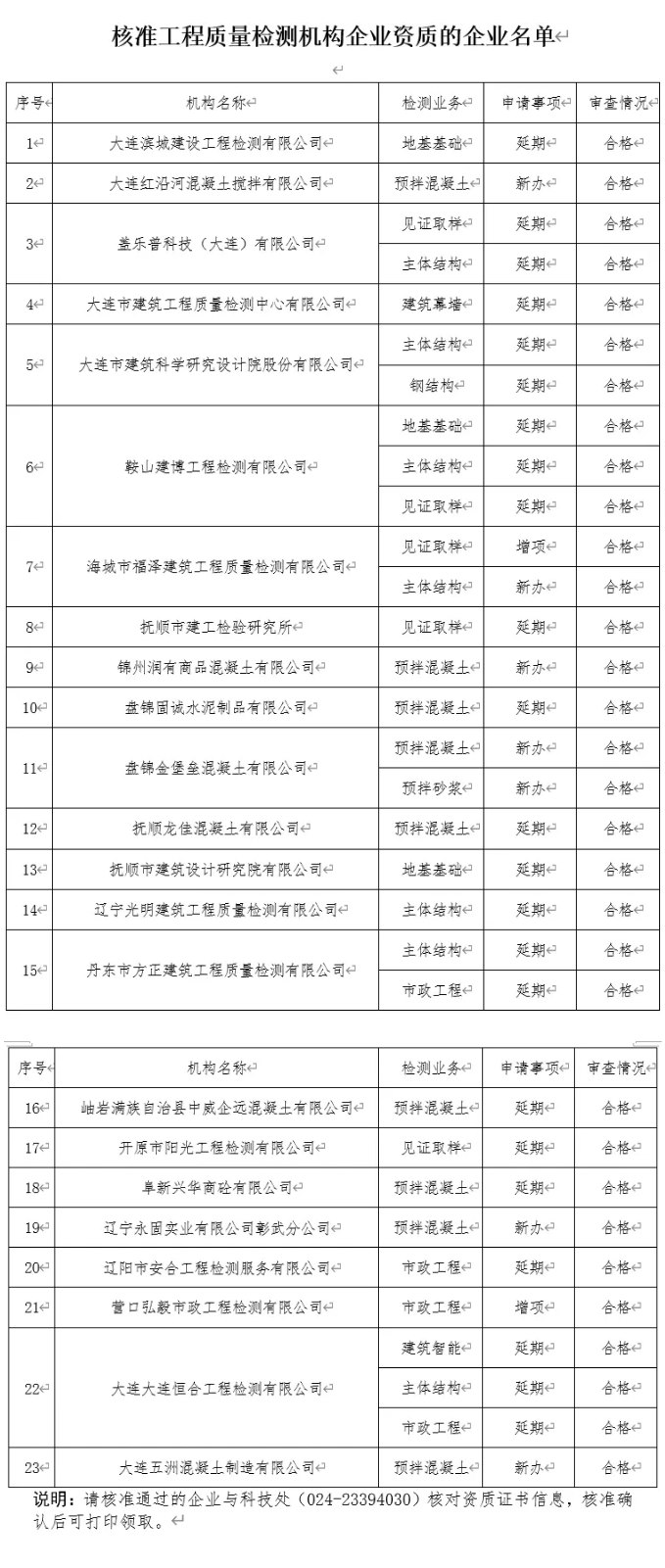 按照《建设工程质量检测管理办法》(建设部令第141号)有关规定,现将我厅审查核准的大连滨城建设工程检测有限公司等23家工程质量检测机构企业资质的企业名单予以公布。