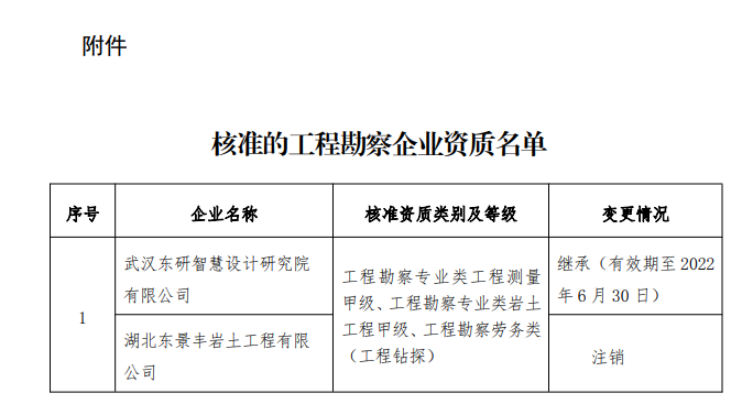 湖北省住建厅关于公布核准的工程勘察企业资质的公告