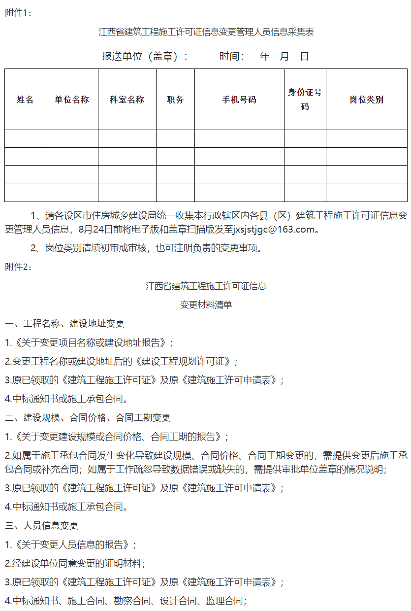 附件:1.江西省建筑工程施工许可证信息变更管理人员