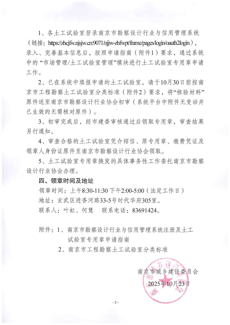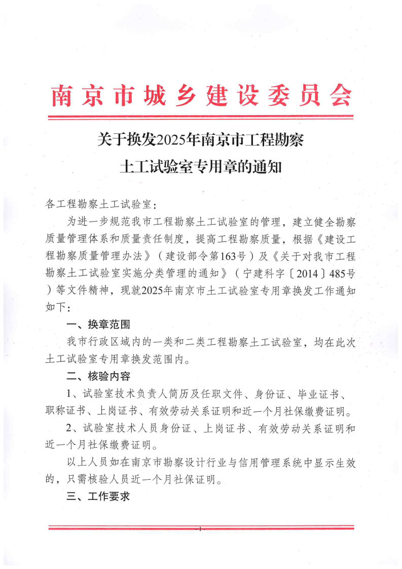 关于换发2025年南京市工程勘察土工试验室专用章的通知