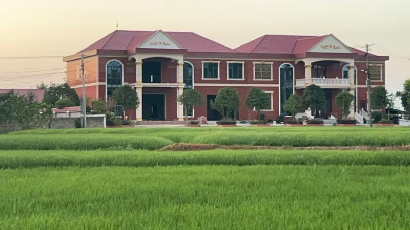 设计/施工特色:采用新中式与现代建筑风格融合的设计手法,将传统中式建筑元素与现代设计理念深度结合,在外观造型、空间布局、材料选用、庭院打造及文化内涵营造上独具特色。屋顶保留坡屋顶等中式经典形制,简化繁复装饰,以现代工艺强化空间层次感。墙体以红色为主色调,融入米白色欧式别墅常用配色,增添灵动活泼的氛围。装饰线条流畅、造型方正,窗套、檐口等细节嵌入竖白格栅,中式元素简约而不失韵味。门楣设计精致简洁,与整体风格浑然一体。整体设计兼顾美观性与实用性,为乡村建筑风格创新提供了优质范本。