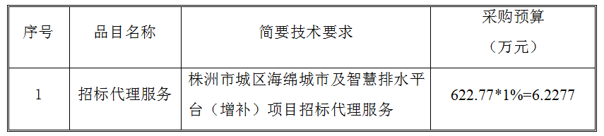 株洲市城区海绵城市及智慧排水平台(增补)项目招标代理采购需求