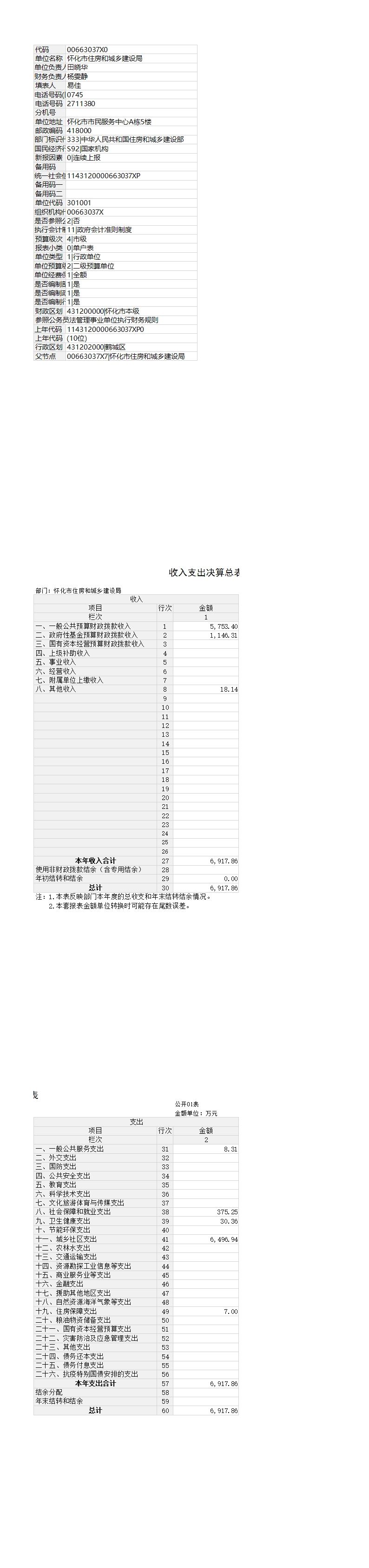 怀化市住房和城乡建设局2024年决算表