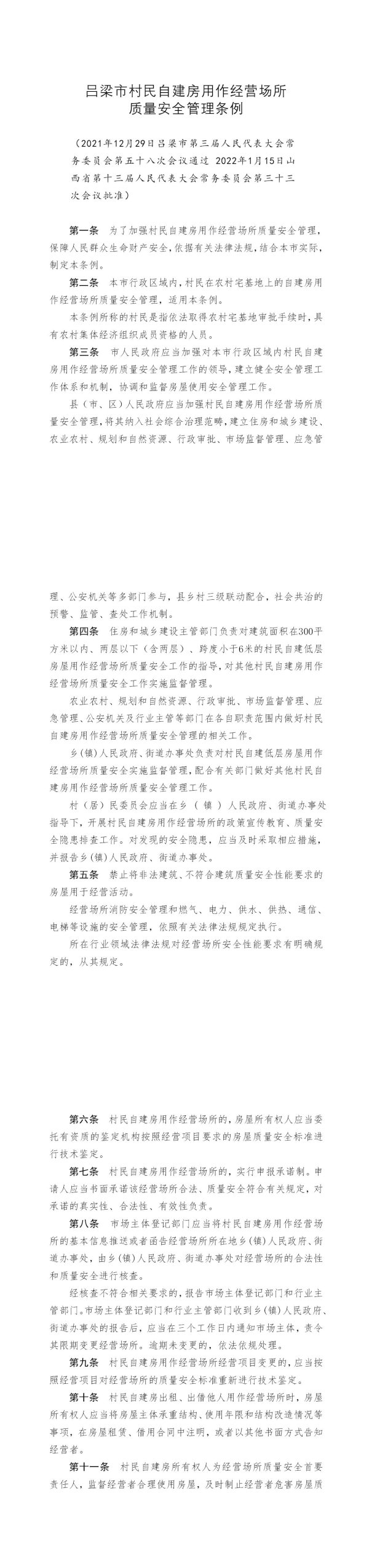 吕梁市村民自建房用作经营场所