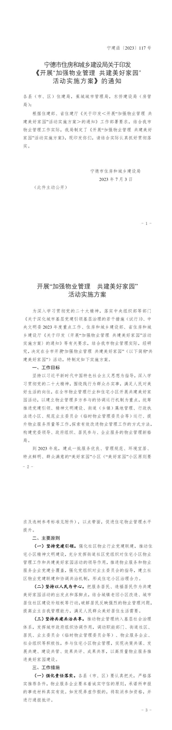 (二)坚持以人民为中心。把服务居民、造福居民作为共建美好家园活动的出发点和落脚点,结合城镇老旧小区改造、城市居住社区建设补短板等行动,破解居民反映强烈的物业管理问题,提高业主自我管理能力,满足人民群众美好居住生活需要。