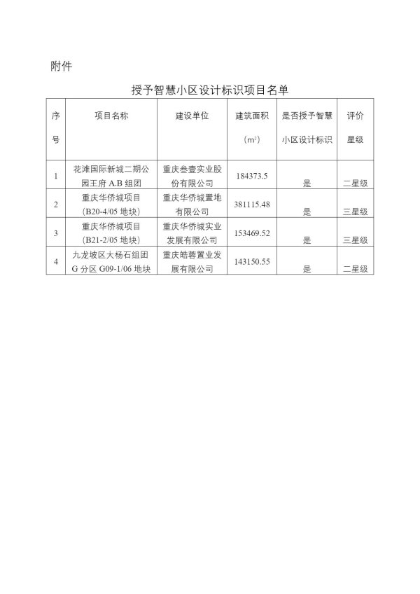 重庆授予智慧小区设计标识项目名单20191016