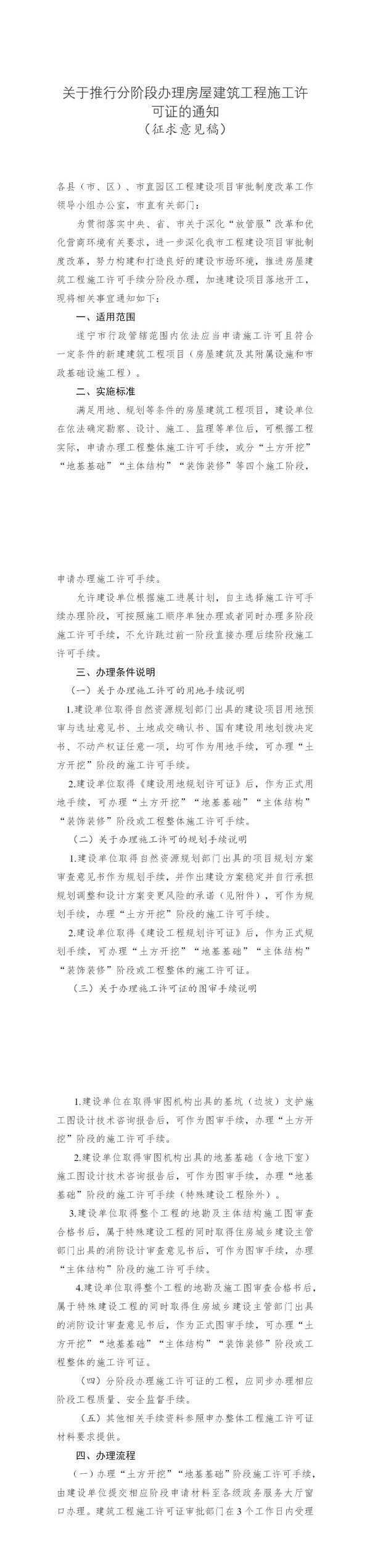 关于推行分阶段办理房屋建筑工程施工许可证的通知