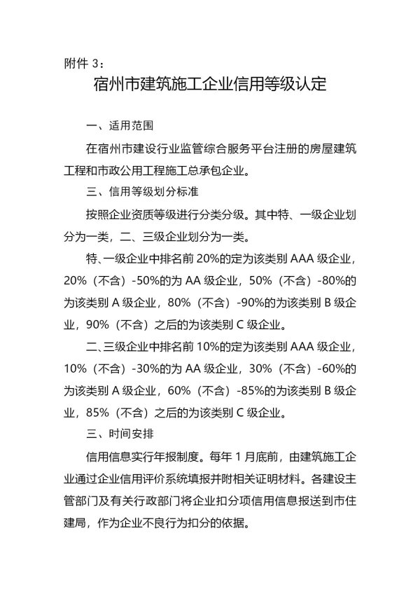 二、三级企业中排名前10%的定为该类别AAA级企业,10%(不含)-30%的为AA级企业,30%(不含)-60%的为该类别A级企业,60%(不含)-85%的为该类别B级企业,85%(不含)之后的为该类别C级企业。