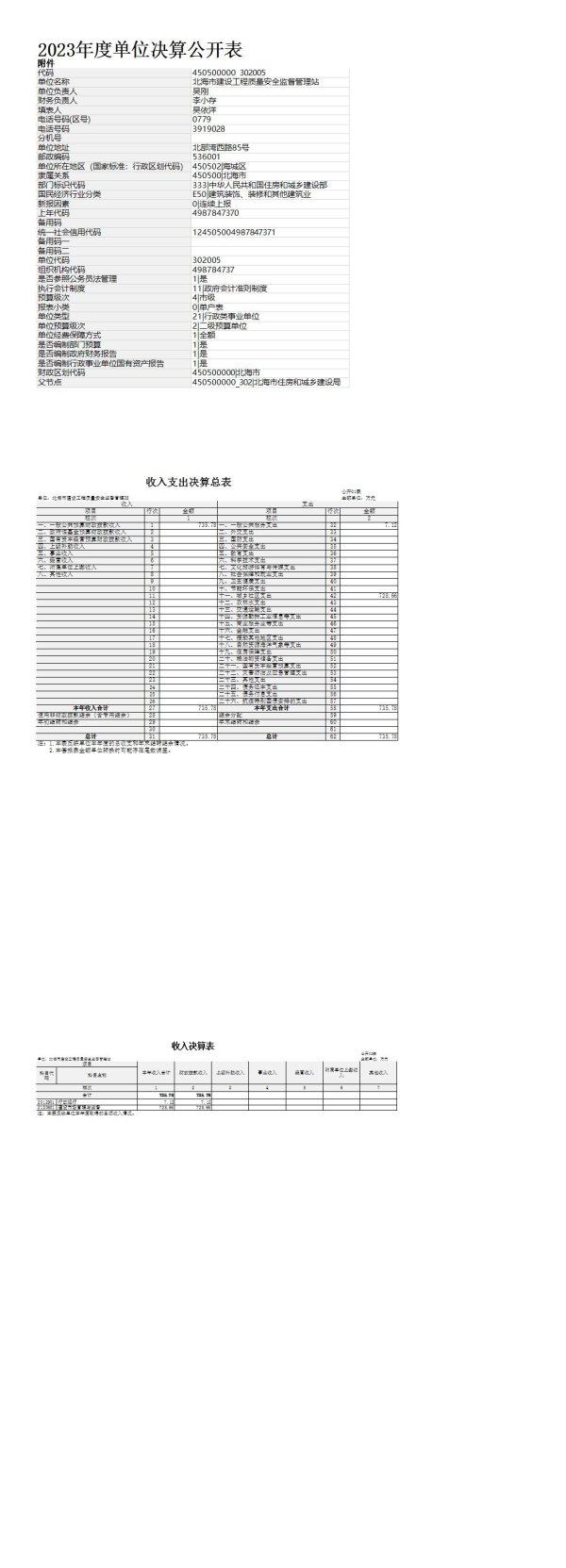 北海市建设工程质量安全监督管理站2023年度单位决算公开表