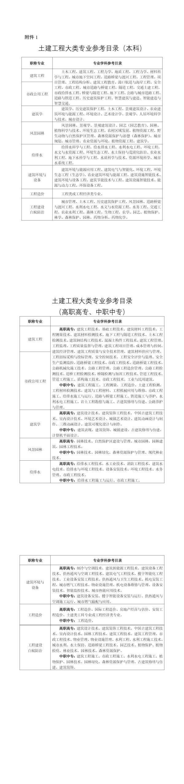 土建工程大类专业参考目录