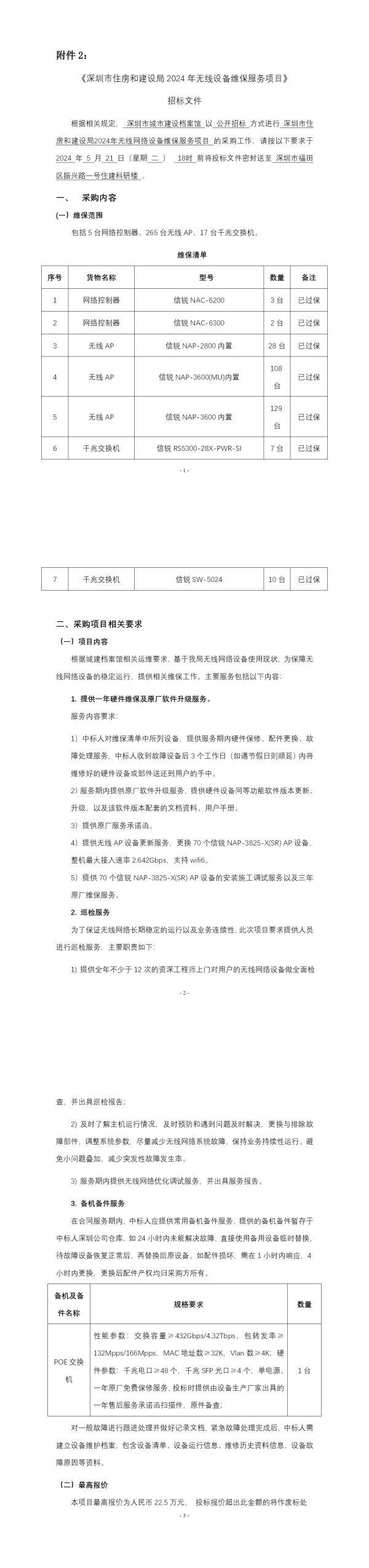 《深圳市住房和建设局2024年无线设备维保服务项目》