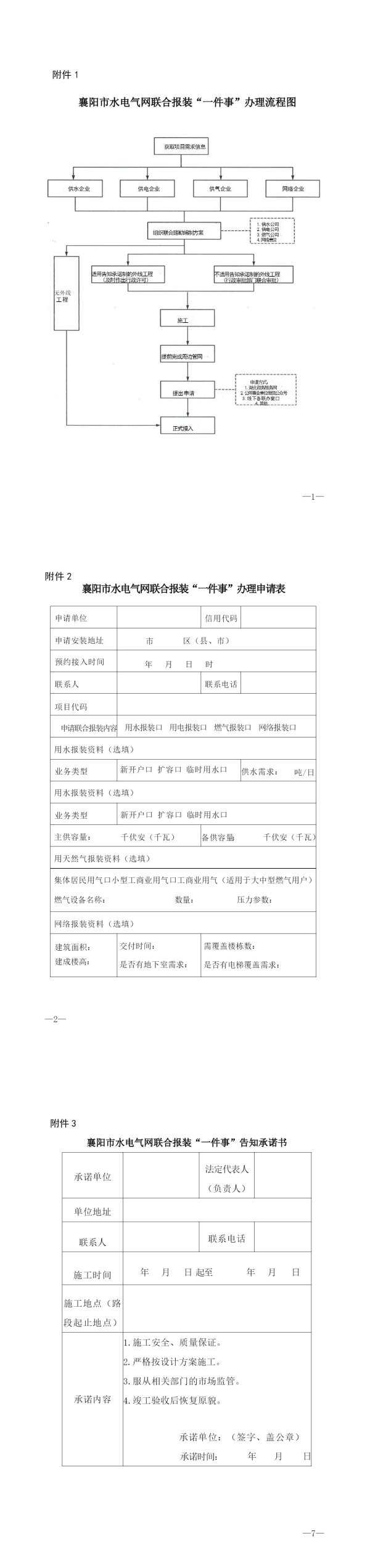 襄阳市水电气网联合报装“一件事”工作实施方案附件1-3