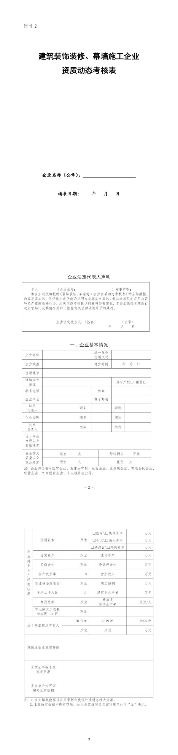 本企业此次填报的《装饰装修、幕墙施工企业资质动态考核表》的全部数据、内容是真实的,同样我在此所做的声明也是真实有效的。我知道虚假的声明与资料是严重的违法行为,此次动态考核提供的资料如有虚假,本企业愿接受建设行政主管部门及其他有关部门依据有关法律法规给予的处罚。