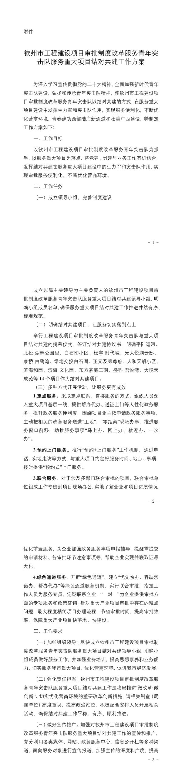 钦州市工程建设项目审批制度改革服务青年突击队服务重大项目结对共建工作方案