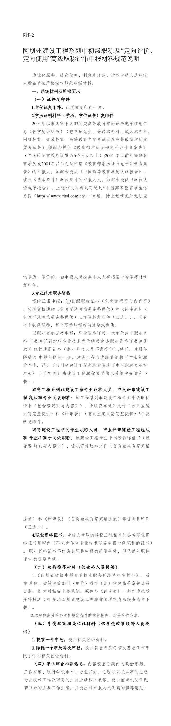 阿坝州建设工程系列中初级职称及“定向评价、定向使用”高级职称评审申报材料规范说明
