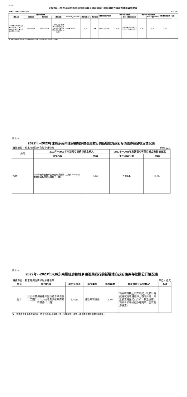 2022年--2023年末黔东南州住房和城乡建设局发行的新增地方政府专项债券情况表