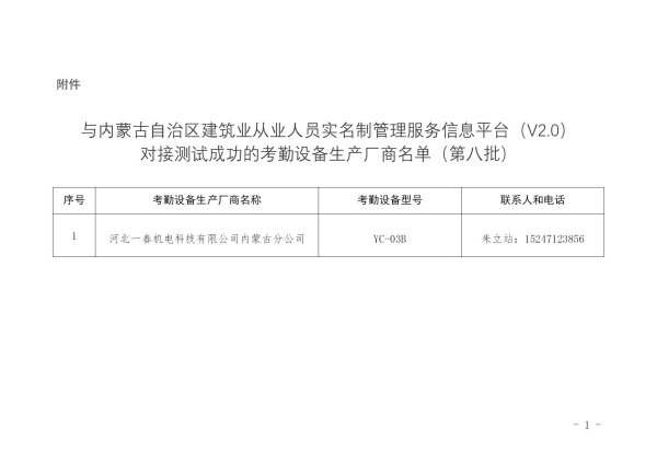 与内蒙古自治区建筑业从业人员实名制管理服务信息平台(V2.0)对接测试成功的考勤设备生产厂商名单(第八批)