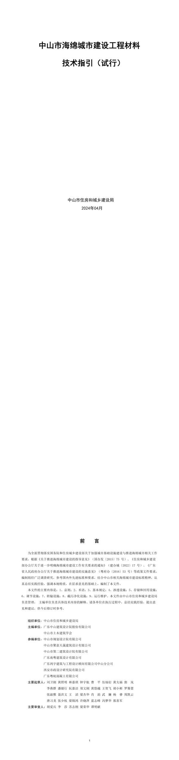 中山市海绵城市建设工程材料技术指引(试行)中山市住房和城乡建设局2024年04月