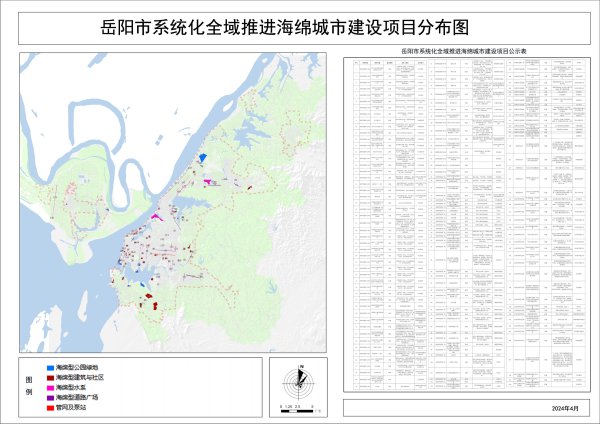 岳阳市系统化全域推进海绵城市建设项目分布图岳阳市系统化全域推进海绵城市建设项目公示表总体工程员泪坊小改建岳阳楼区及周边址念:态撕而积190m园用地面积17.水学院泵站水圳螺小S00m,南水花职业技术学1300m,水花陵戏传本目(式续地1061m,植草法15,水铺装900m2,935.27、水花2,建岳阳市城市白核环数家湖环湖岸線整2座,规模60m3,1巷水利改造工最宽约甫装87.19m2,新建器设施2座,6m3辰置业有省道九山段综绵型水树港水利改造工程新建水收集池10,水花匠阳字隧地产开塘及路国小区洲改东路道污2,区长江段涝区面不线(青年西路日市樊院日市东道场配本项目设置有水收集池交投集团改节池前进水流463市东湖电排合全水(工作米:下沉式网工科阳楼区桂花园小南污y设污水管dn160DN区东城广小区海绵面积1.52ha,下沉式泵站流量5m3/s北路南污分流区新建DN400DN500污水管道水铺装:7441m2,道东路污分流改,龄路北段爾污基路(云欣大-719米,宽25米,昆区青头公园(市氨小0.58h.60m,为岳阳市湖南城陵新建雨水管道2220米,管面和2.58ha,下沉125米,含排1积1.49ha,,25米,合排水个小区,13910,路日球区线厂公区该岭东居民。排X象骨港电各(科研路雷积为8270.73m系综合治理华山器妇幼华新建水铺装6374=2,下凹式绿自,内这义口横路长小水管网面积8029.岳阳市美的·梧制可路道路工利新建,南水花园22鼎辉家河西岸片城投集新建新建万元。市佳建局■海绵型公园绿地武绿地1974m图海绵型建筑与社区48海绵型建筑天伦湖与林GIS平台建设与监威市蓝测非水管网GIS系统、污水处理市住建局海绵型水系式绿地980m、透水铺装新城管公司城市建设监例海绵型道路广场管网及泵站01.252.55千米2024年4月