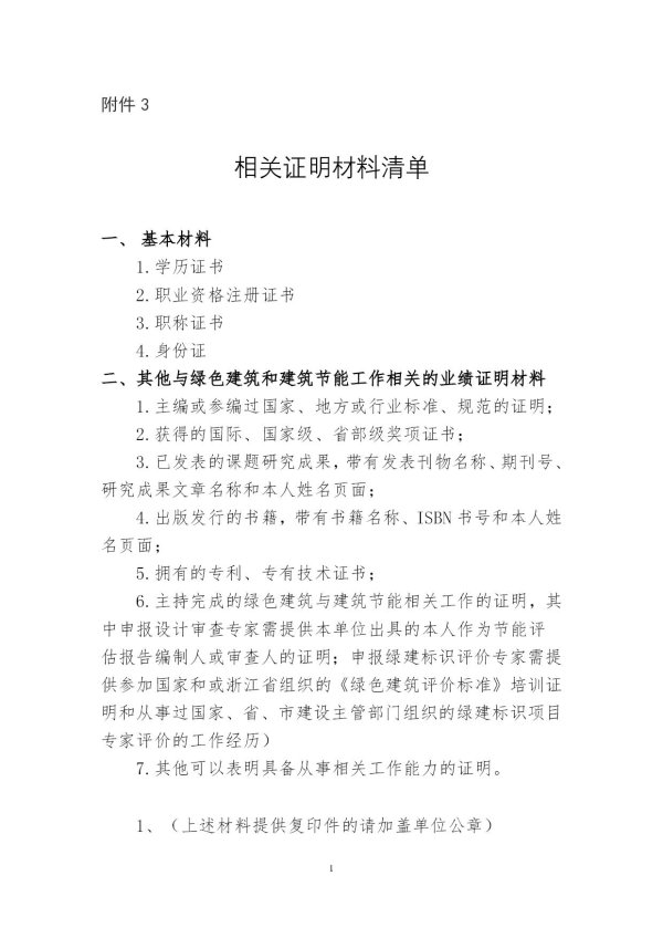 杭州市绿色建筑与建筑节能专家库相关证明材料清单