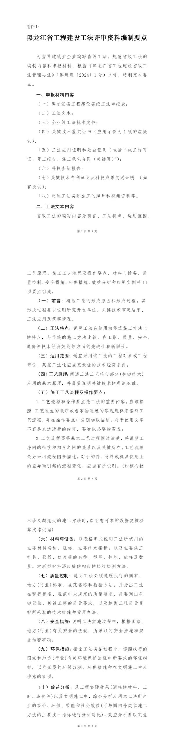 为指导建筑业企业编写省级工法,规范省级工法的编制内容和申报材料,根据《黑龙江省工程建设省级工法管理办法》(黑建规〔2024〕1号)文件,特制定本要点。