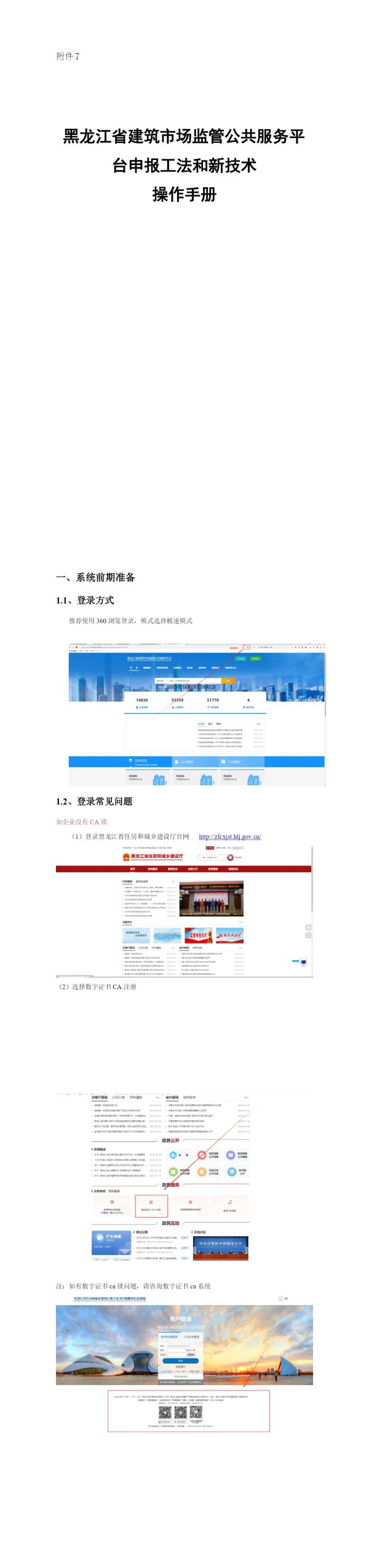 黑龙江省建筑市场监管公共服务平台申报工法和新技术操作手册