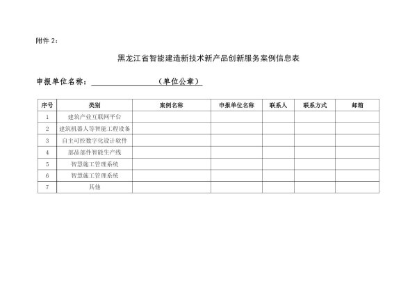 黑龙江省智能建造新技术新产品创新服务案例信息表