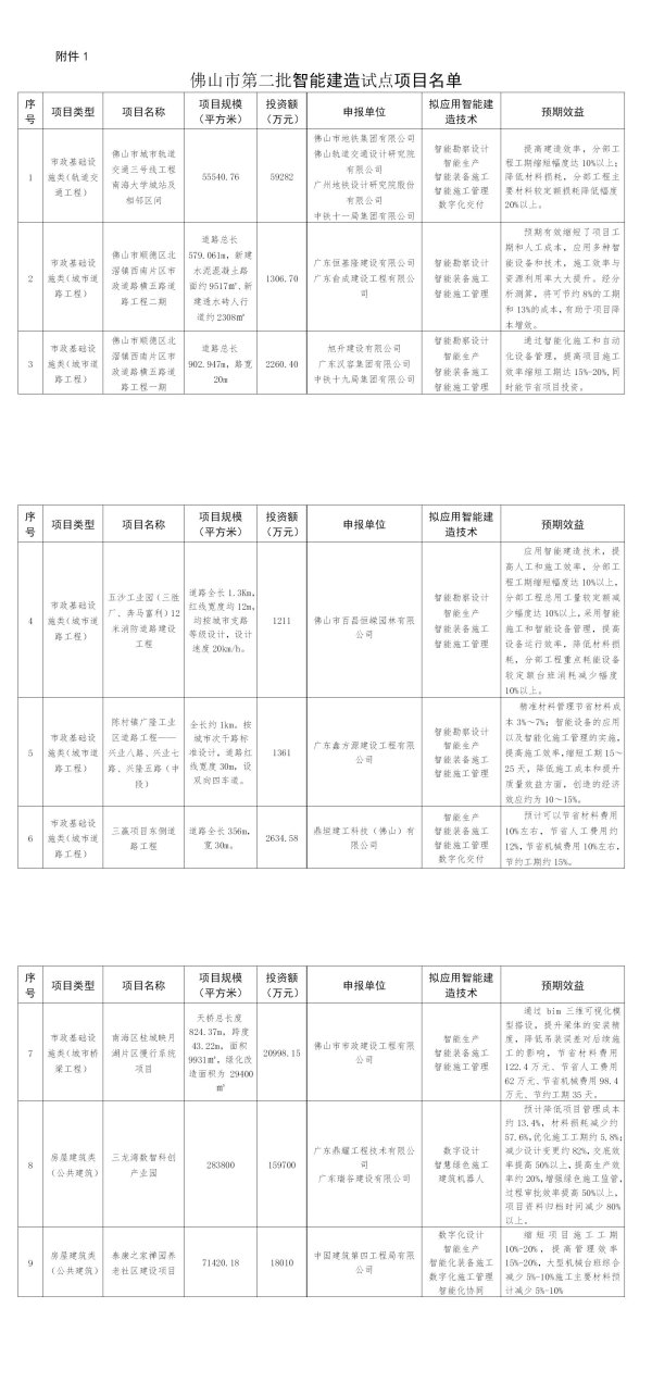 佛山市第二批智能建造试点项目名单