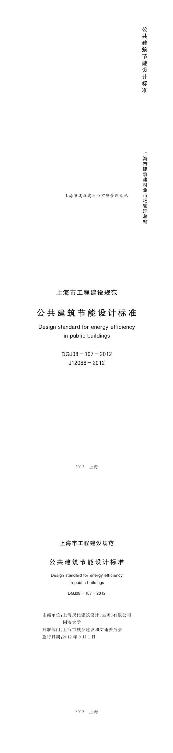 上海市工程建设规范公共建筑节能设计标准DesignstandardforenergyefficiencyinpublicbuildingsDGJ08-107-2012J12068-20122012上海