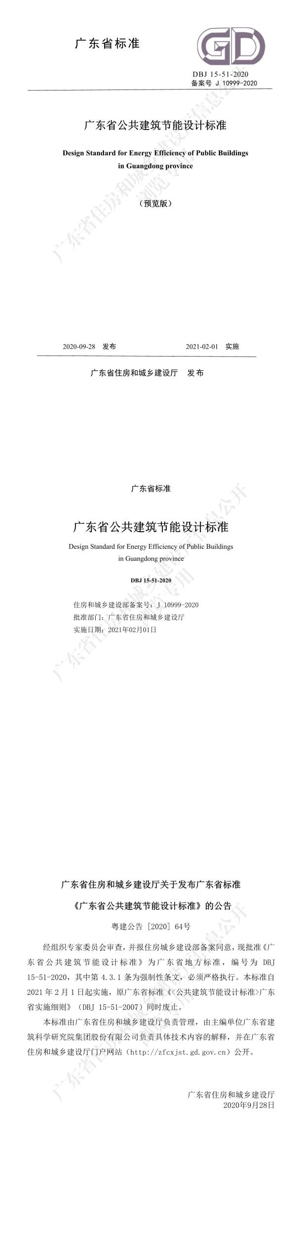 广东省标准eDDBJ15-51-2020备案号J10999-2020广东省公共建筑节能设计标准信息DesignStandardforEnergyEfficiencyofPublicBuildingsinGuangdongprovince(预览版)广东省住房和2020-09-28发布2021-02-01实施广东省住房和城乡建设厅发布