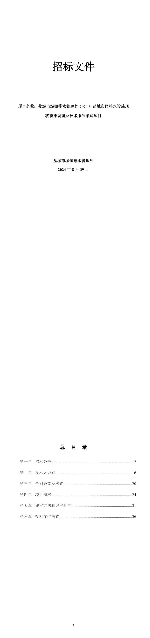 1、项目名称:盐城市城镇排水管理处2024年盐城市区排水设施现状摸排调研及技术服务采购项目。