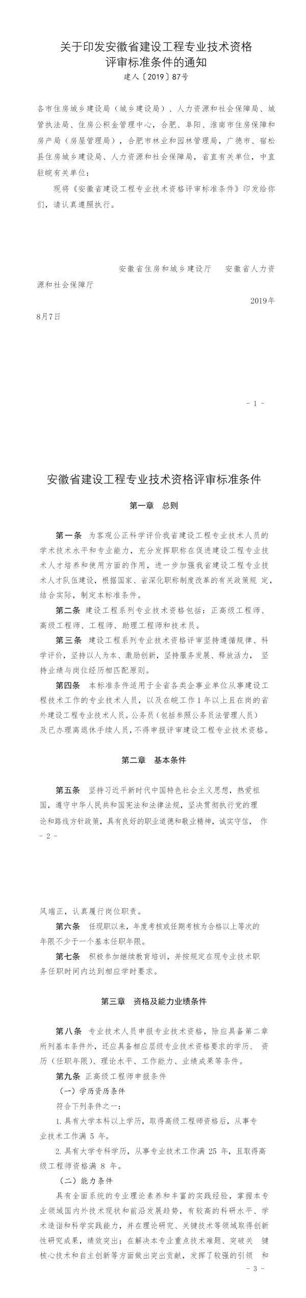 现将《安徽省建设工程专业技术资格评审标准条件》印发给你们,请认真遵照执行。