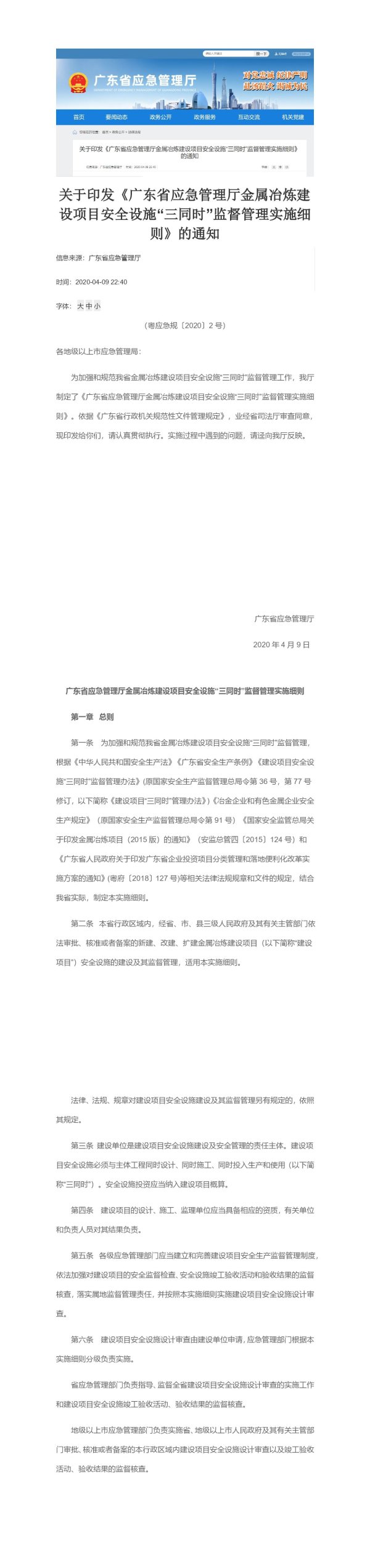 关于印发《广东省应急管理厅金属冶炼建设项目安全设施“三同时”监督管理实施细则》的通知