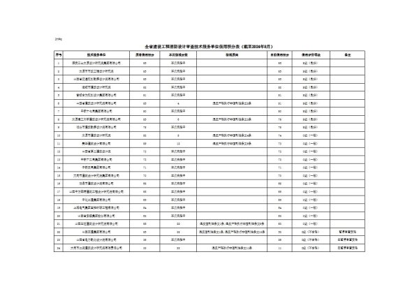 全省建设工程消防设计审查技术服务单位信用积分表(截至2024年8月)