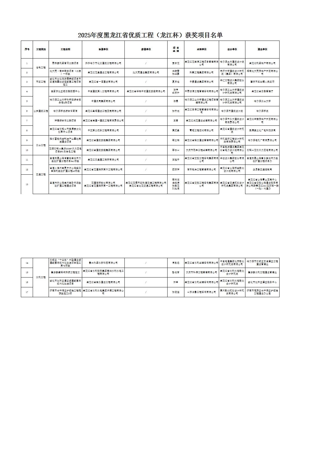 2025年度黑龙江省优质工程(龙江杯)获奖项目名单