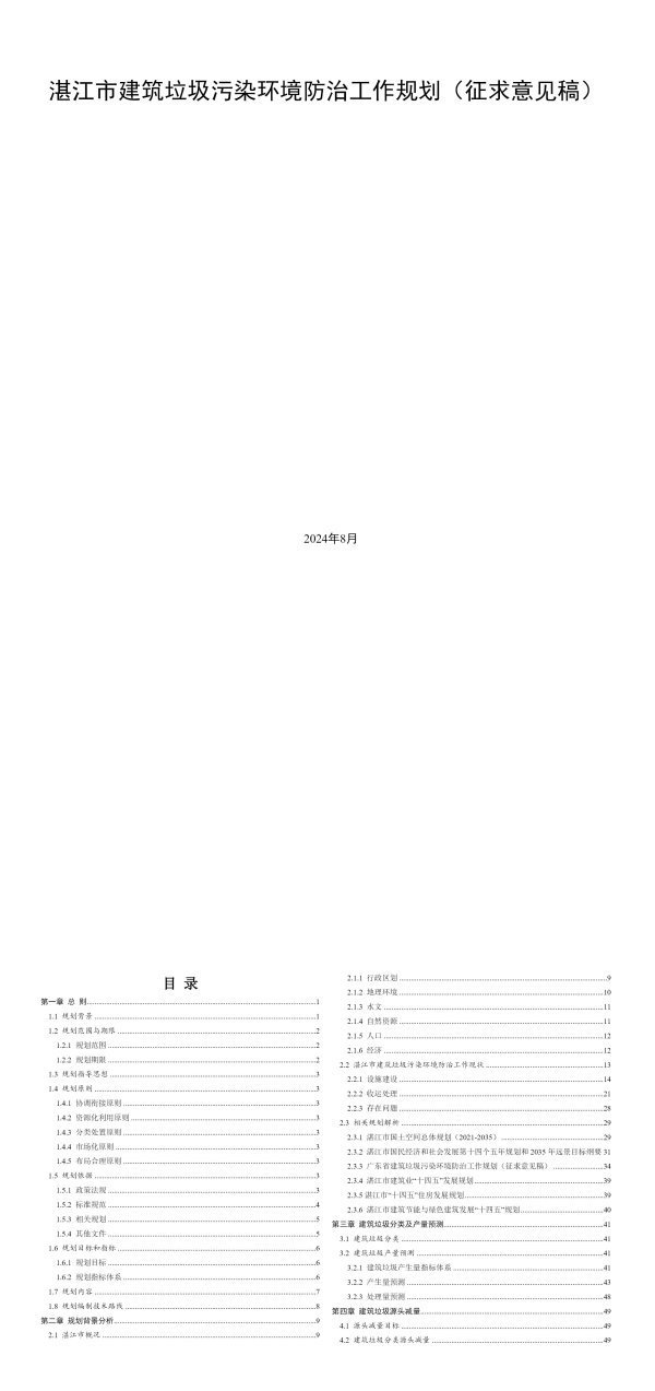 湛江市建筑垃圾污染环境防治工作规划(征求意见稿)