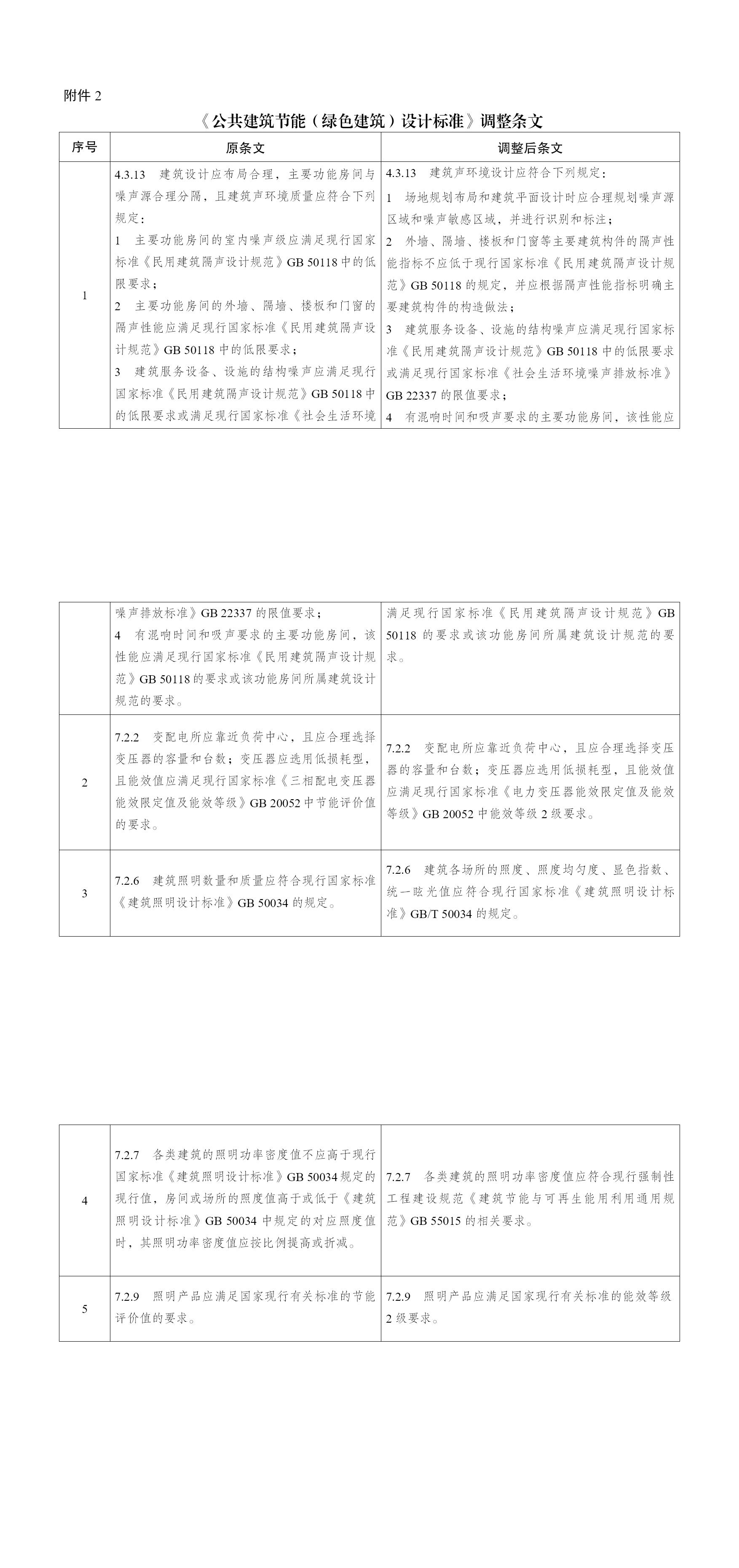 《公共建筑节能(绿色建筑)设计标准》调整条文