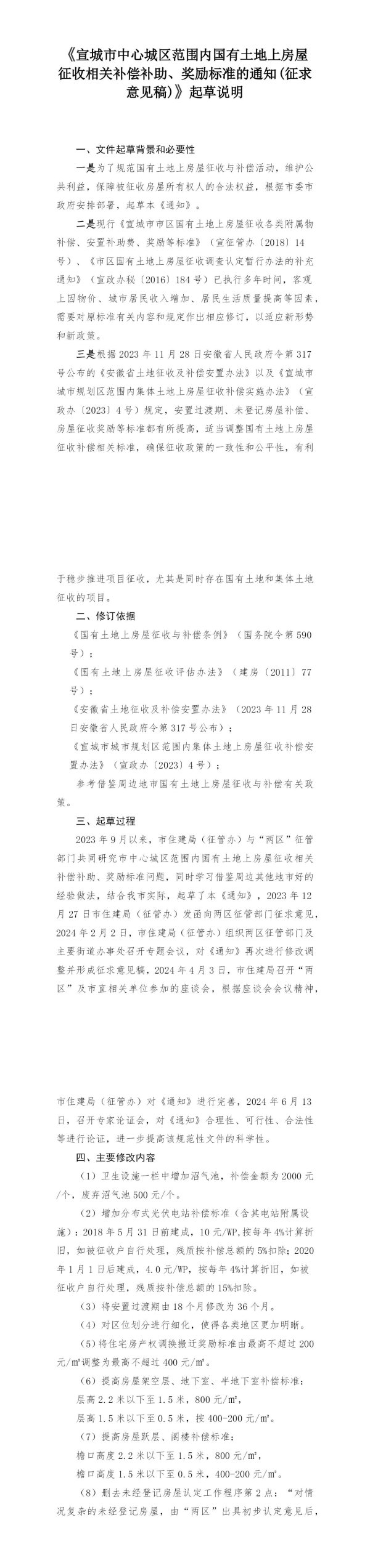 《宣城市中心城区范围内国有土地上房屋征收相关补偿补助、奖励标准的通知(征求意见稿)》起草说明