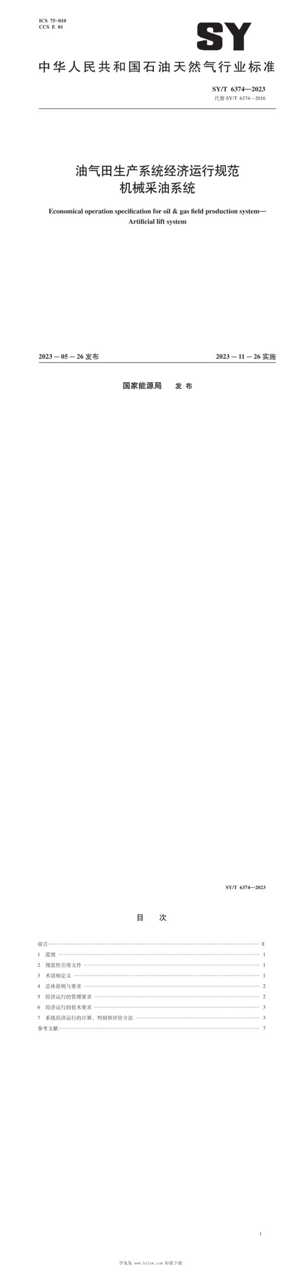 SY/T6374—2023目次前言范围2规范性引用文件3术语和定义2规范性引用文件3术语和定义……..14总体原则与要求25经济运行的管理要求26经济运行的技术要求97系统经济运行的计算、判别和评价方法%参考文献……7学兔兔www.bzfxw.com标准下载