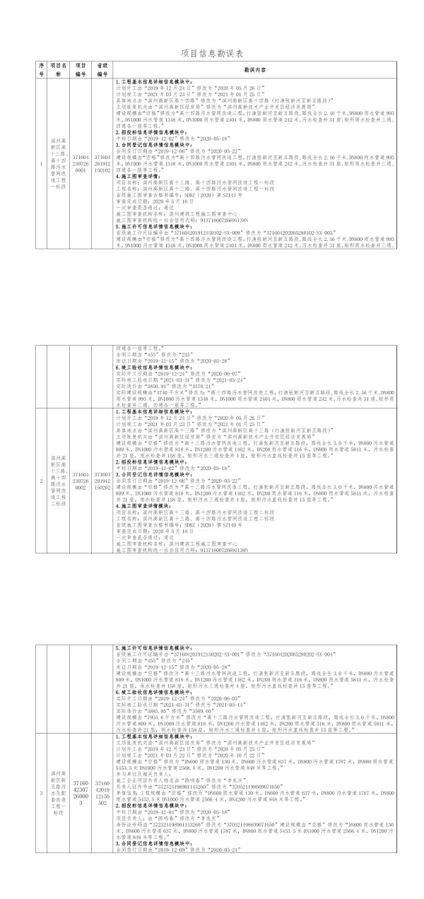 项目信息勘误表