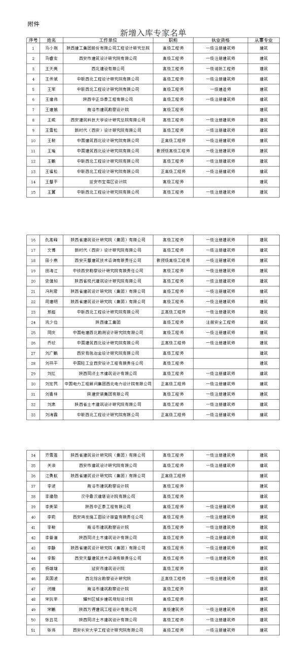 关于2023-2025年度陕西省建设工程消防技术新增入库专家名单