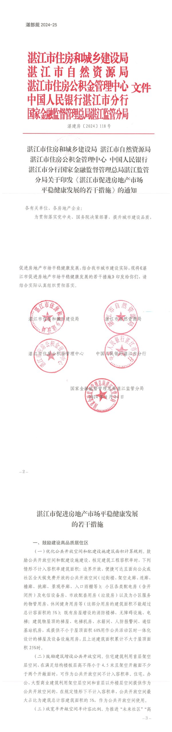 湛部规2024-25湛江市住房和城乡建设局湛江市自然资源局湛江市住房公积金管理中心文件中国人民银行湛江市分行国家金融监督管理总局湛江监管分局湛建房[2024]118号湛江市住房和城乡建设局湛江市自然资源局湛江市住房公积金管理中心中国人民银行湛江市分行国家金融监督管理总局湛江监管分局关于印发《湛江市促进房地产市场平稳健康发展的若干措施》的通知各有关单位、各房地产企业:为贯彻落实党中央、国务院决策部署,提升城市建设品质,