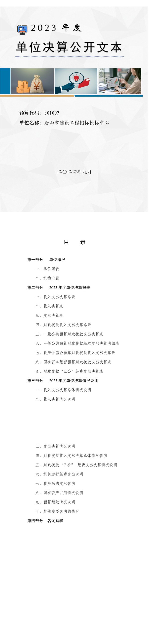 =2023年度单位决算公开文本预算代码:801007单位名称:唐山市建设工程招标投标中心二〇二四年九月