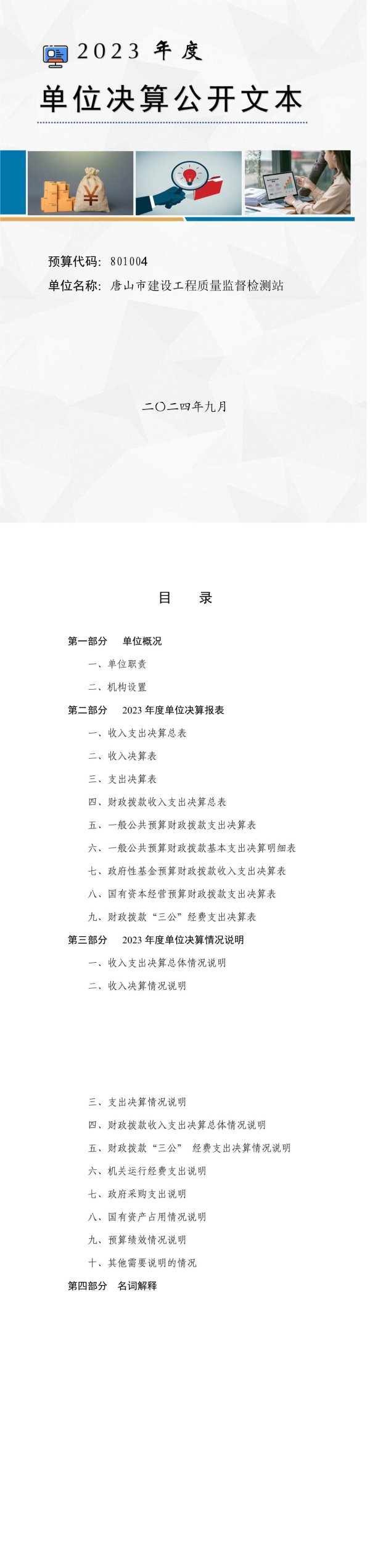 =2023年度单位决算公开文本预算代码:801004单位名称:唐山市建设工程质量监督检测站二〇二四年九月