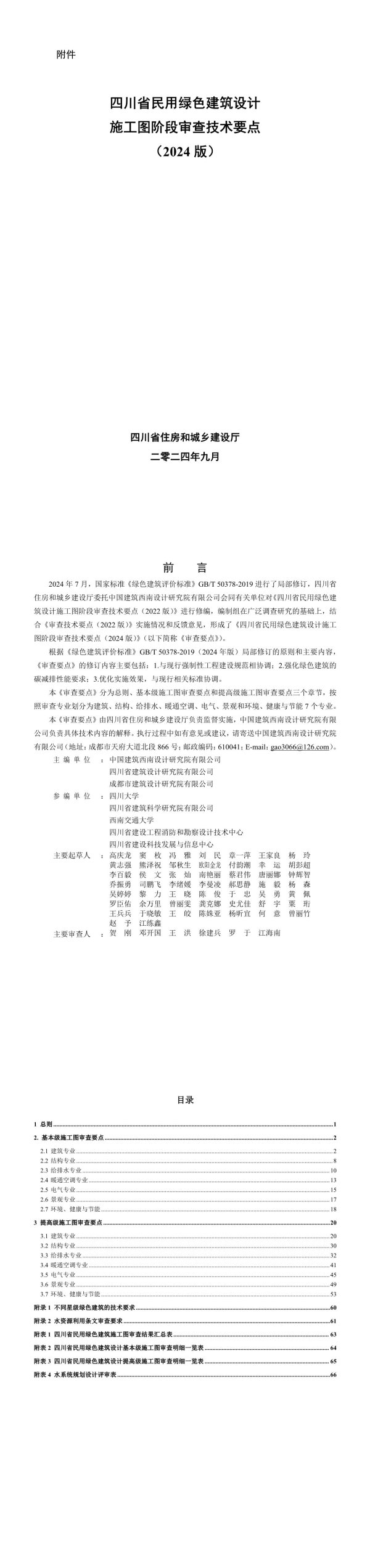 附件四川省民用绿色建筑设计施工图阶段审查技术要点(2024版)四川省住房和城乡建设厅二零二四年九月