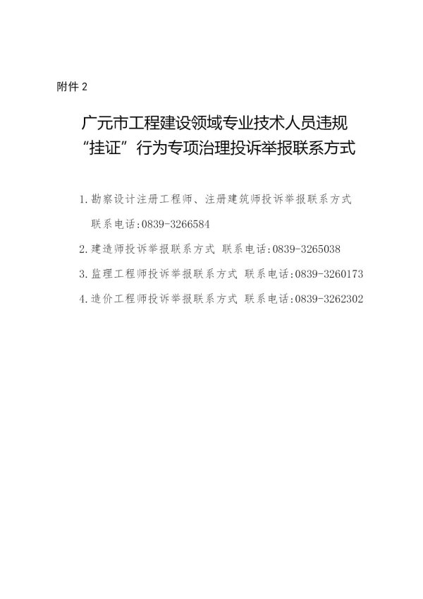 广元市工程建设领域专业技术人员违规“挂证”行为专项治理投诉举报联系方式