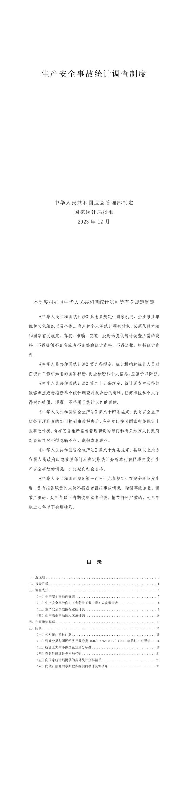 生产安全事故统计调查制度中华人民共和国应急管理部制定国家统计局批准2023年12月