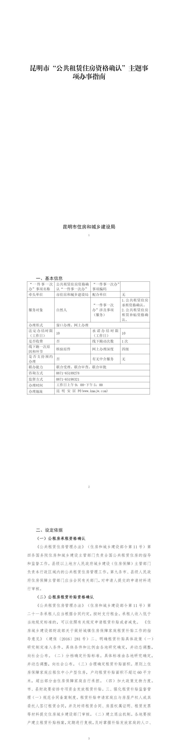 昆明市“公共租赁住房资格确认”主题事项办事指南